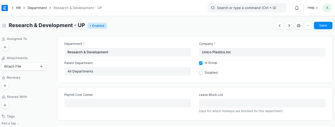 In Frappe HRMS, part of the HRMS Dubai platform, a Department represents a specialized functional area or division within your organization. The system provides robust department management features, including hierarchical structuring, leave management, and expense approval workflows.