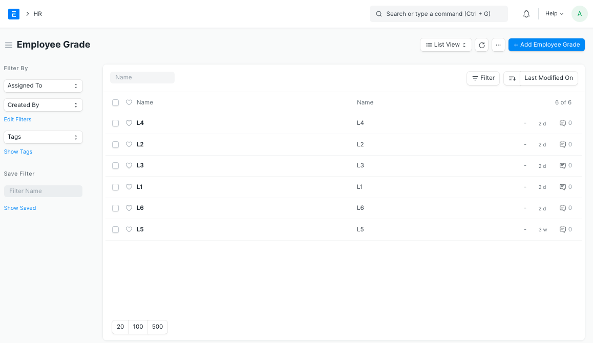 Navigate to: Home > Human Resources > Employee > Employee Grade